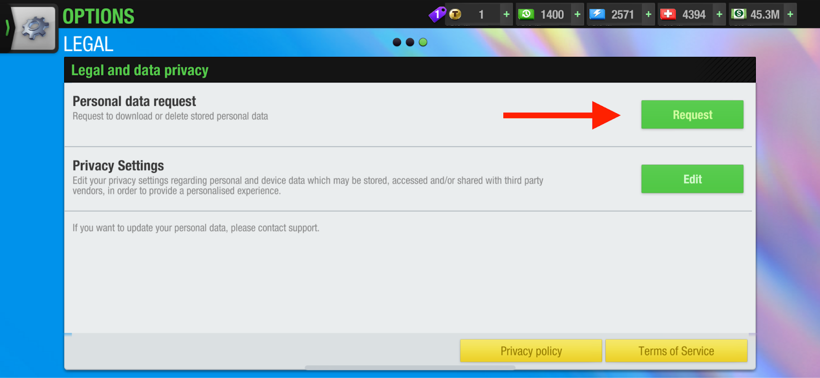 Swipe left until you reach the Legal and data privacy tab.