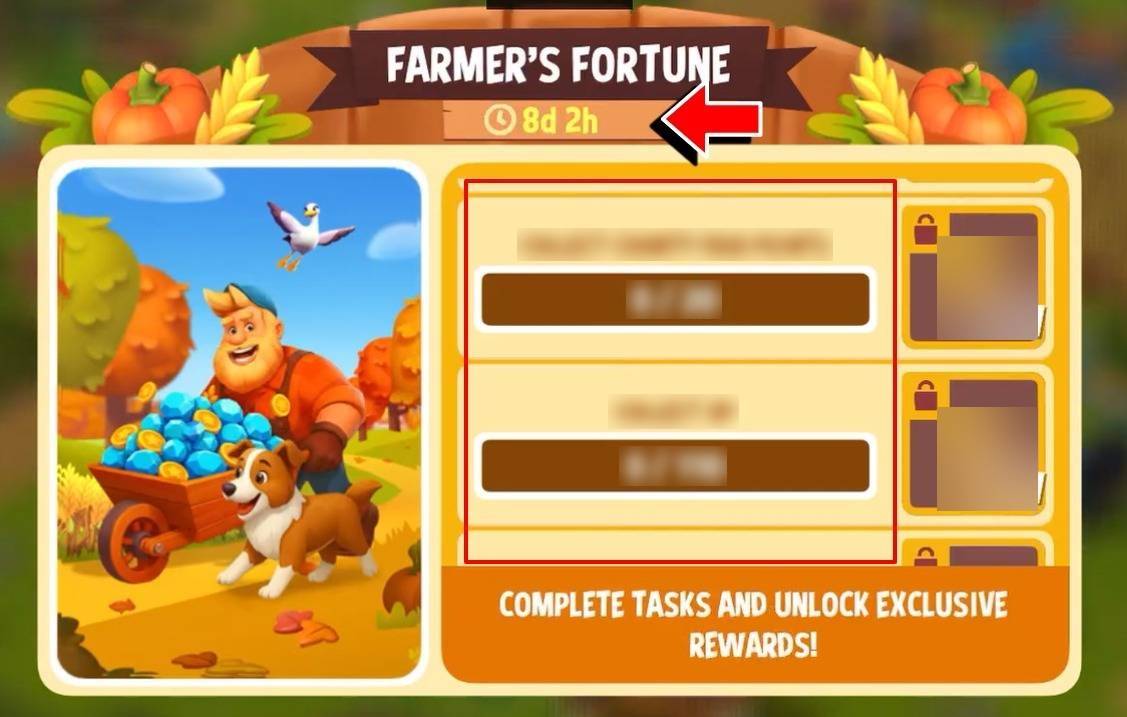 Anmerkung:Nicht abgeholte Belohnungen für abgeschlossene Aufgaben können immer noch am Ende des Farmer-Glücksrad abgeholt werden.