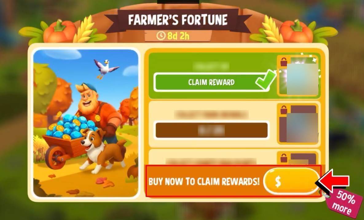 Kaufe das Farmer-Glückrad und erhalte tolle Belohnungen, wenn du bestimmte Aufgaben innerhalb der vorgegebenen Zeit abschließt. Es gibt insgesamt 10 Aufgaben zu erledigen. Jede mit verschiedenen Belohnungen.