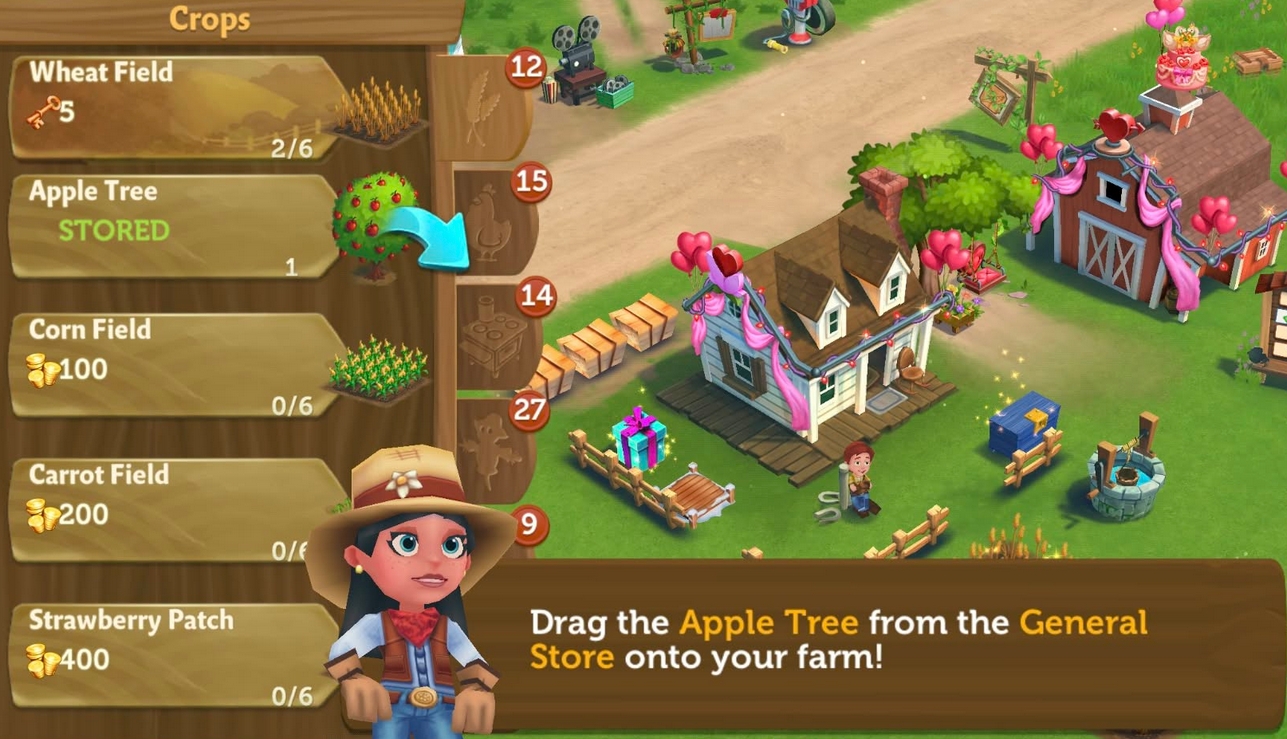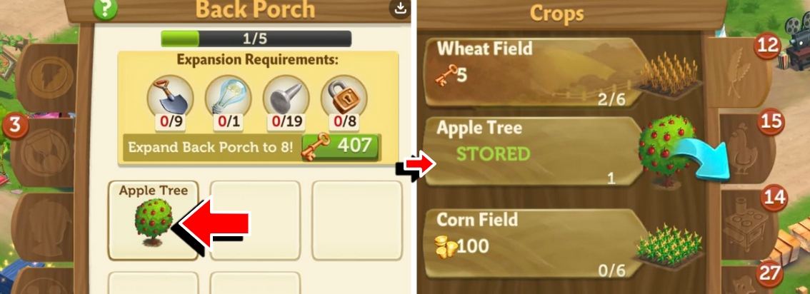 Now let's check on the Apple Tree that we've stored. You can find it in the Back Porch and it can be accessed by tapping the Farm House.