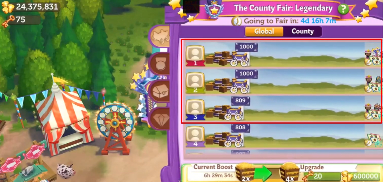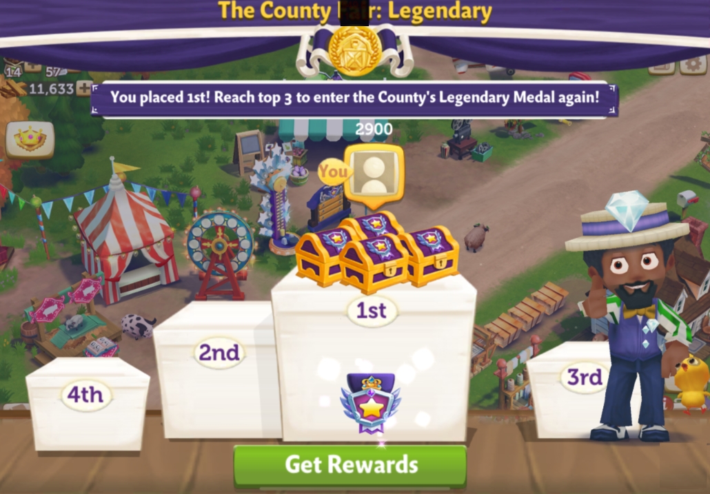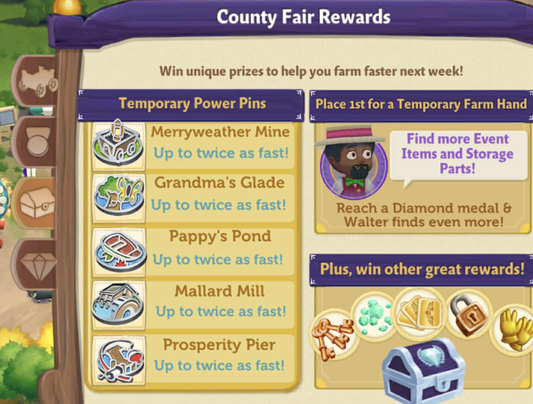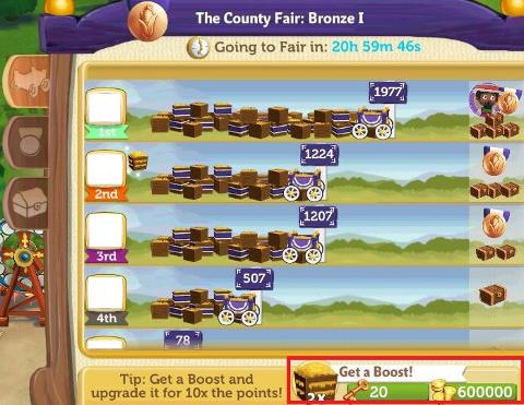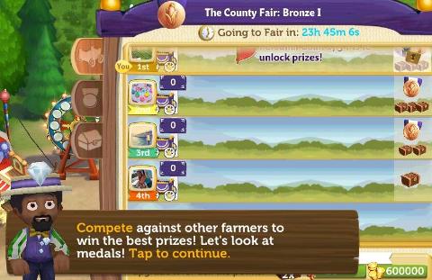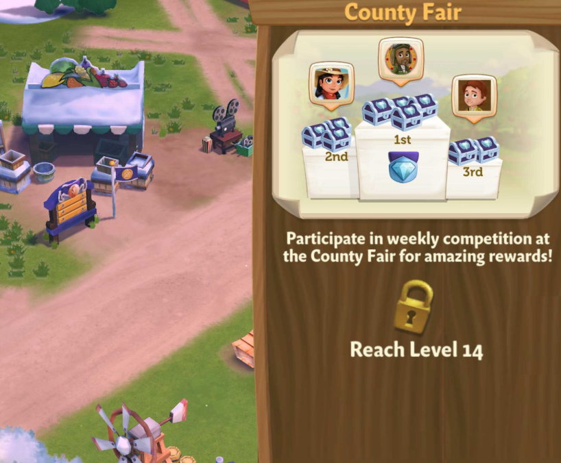 When you have reached Level 14, you will be able to compete with other players in the weekly County Fair event to earn better rewards.