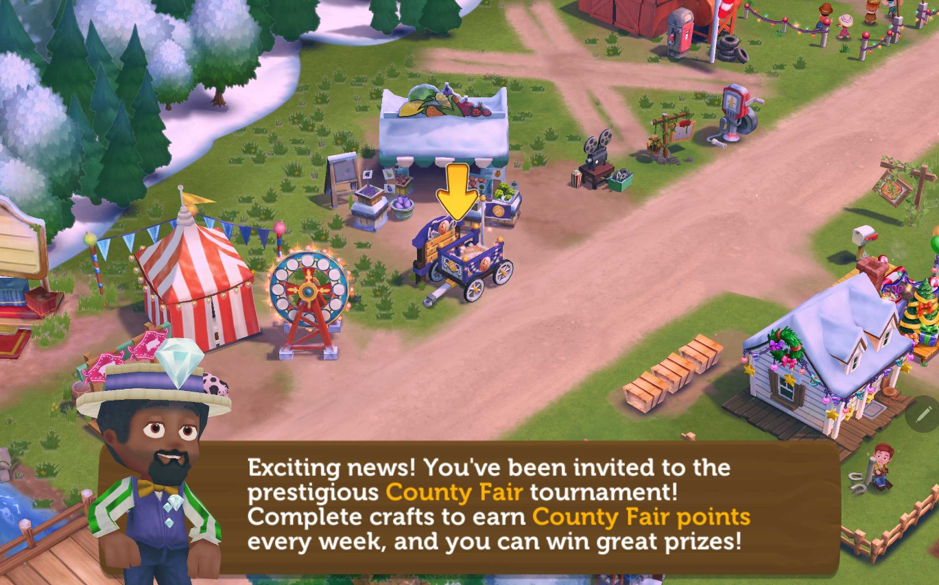 A pop-up invitation will appear, inviting you to the County Fair once you reach the required level. To start, simply tap on the wagon located in front of your Farm Stand.