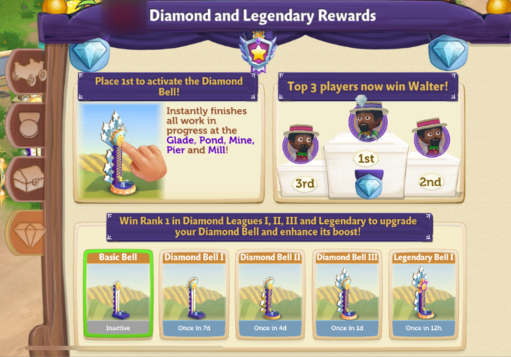 Finish 1st in the Diamond and Legendary league at the end of the week to earn the Diamond Bell.