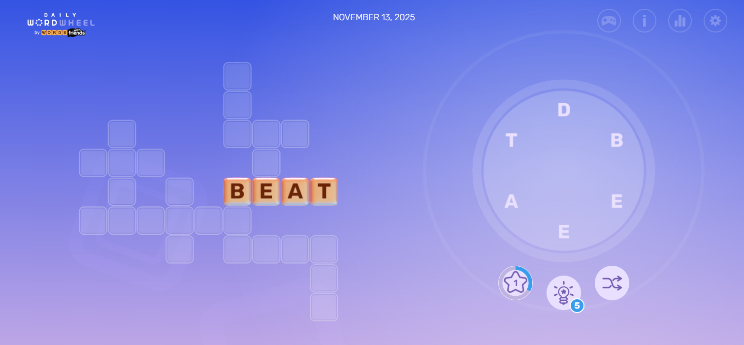 Solve daily puzzles by forming words from a wheel populated with 5-7 letters to fill out the daily crossword.