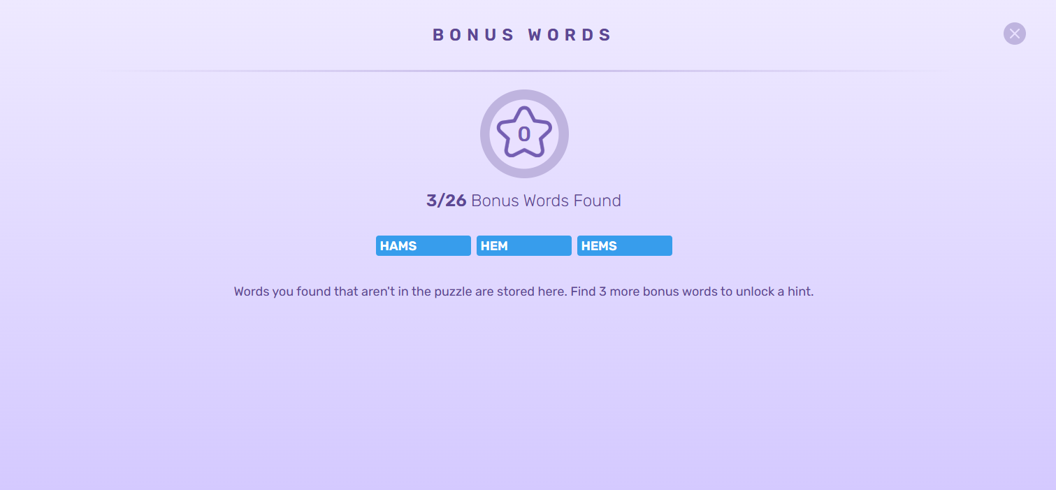 The words that are not in the puzzle are stored in the Bonus Word button. Finding three Bonus Words will reward you with a free Hint.