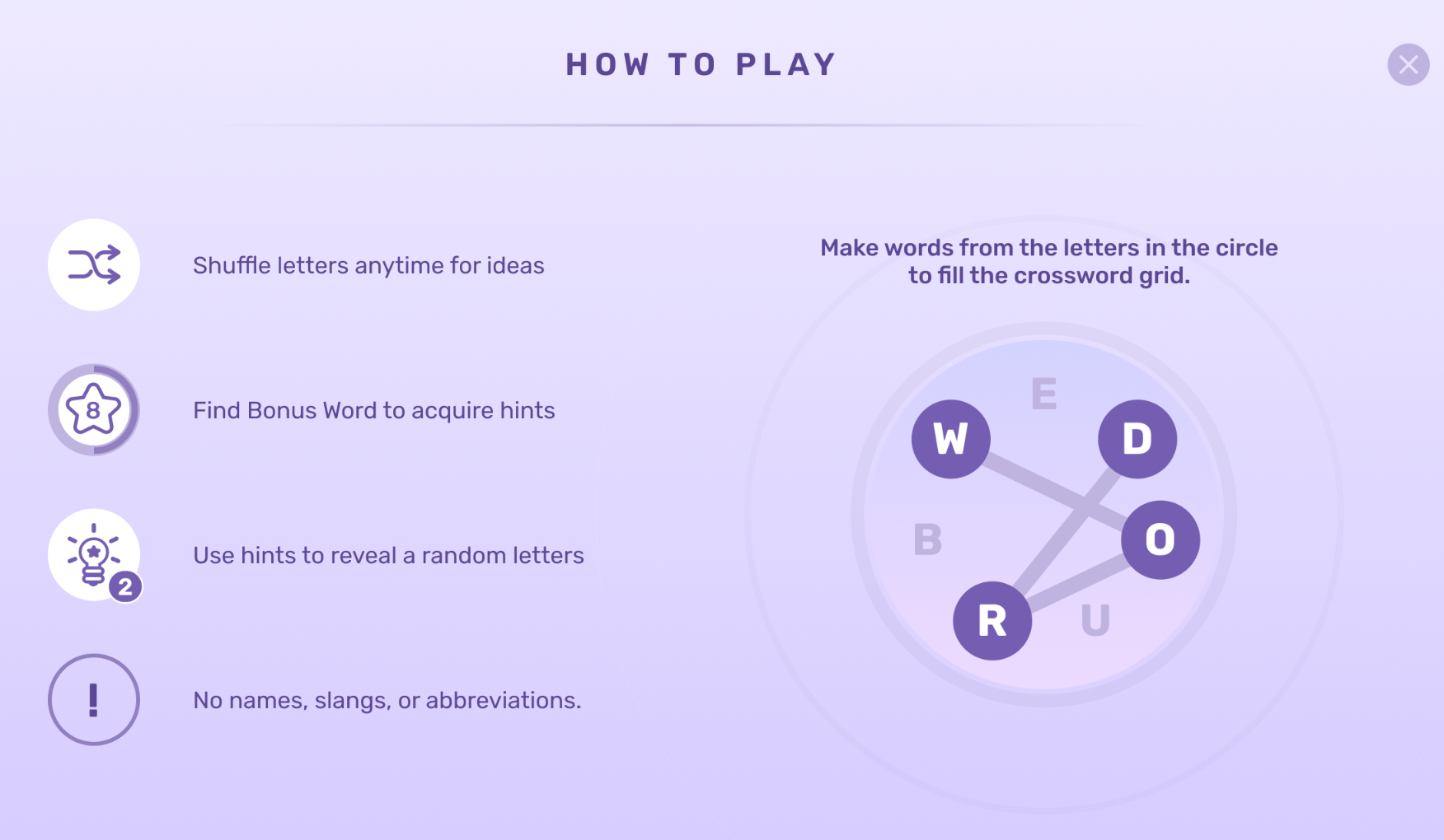 Simply form words from the shuffled letters presented inside the circle to fill out the crossword grid daily.