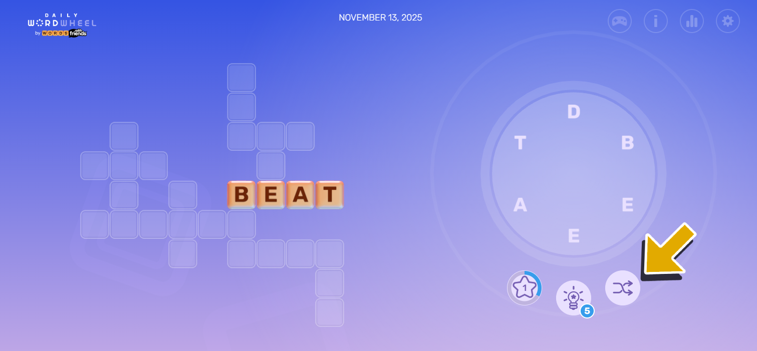 You can click on the Shuffle button to shuffle the letters in the circle if you are having challenges in making out words from it.