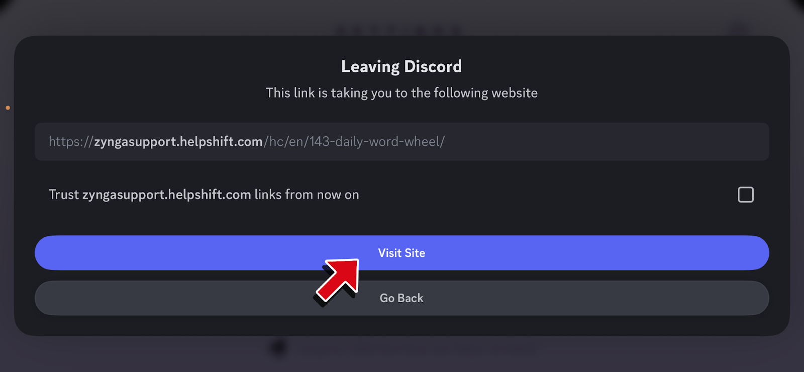 - A pop-up will appear to redirect you to the support page of the game. Tap or click the checkbox, then tap or click on the “Visit Site” button.
