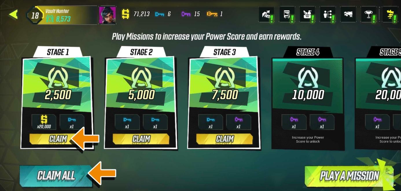 Claim rewards every time you reach a certain amount of Power Score! Tap on your profile avatar in the top-left corner of the HQ screen.