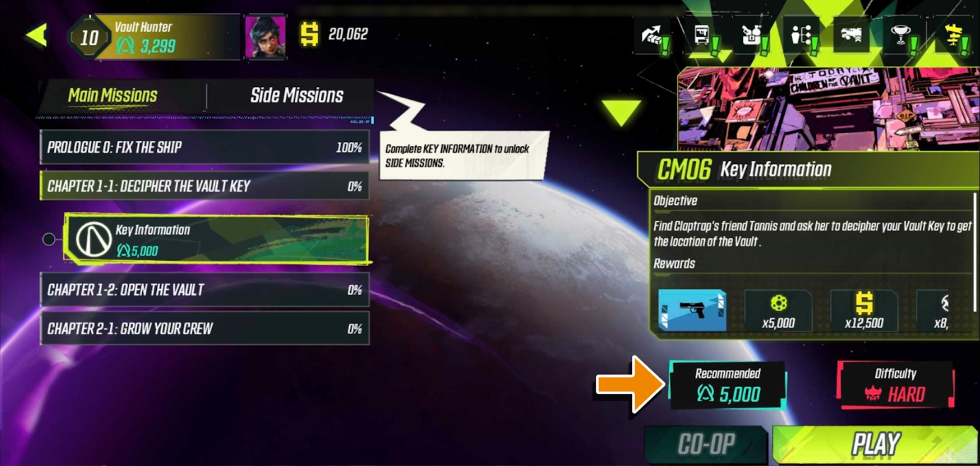 You can also refer to it as missions will have a Recommended minimum Power Score. While you can still proceed even with a low Power Score, you may find it very challenging to finish.