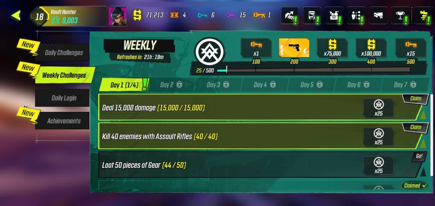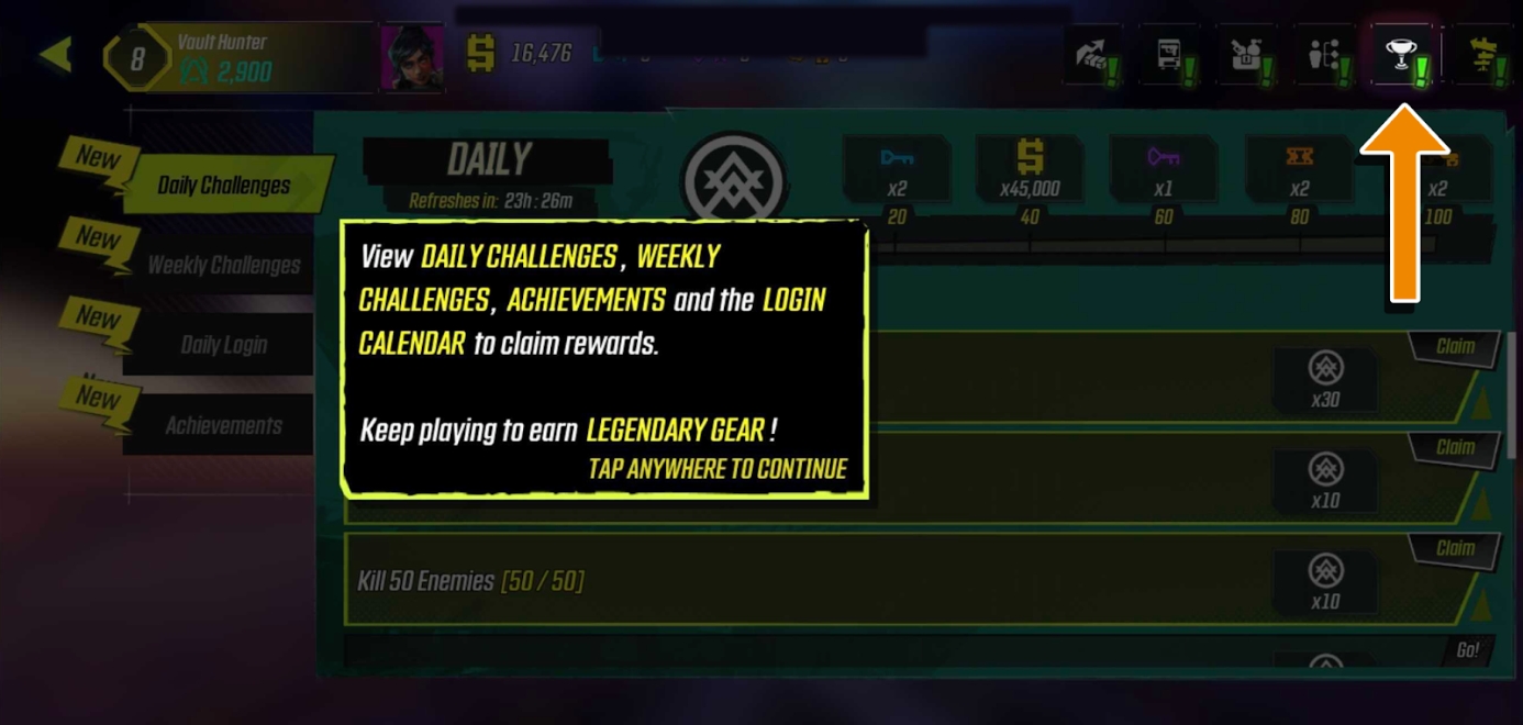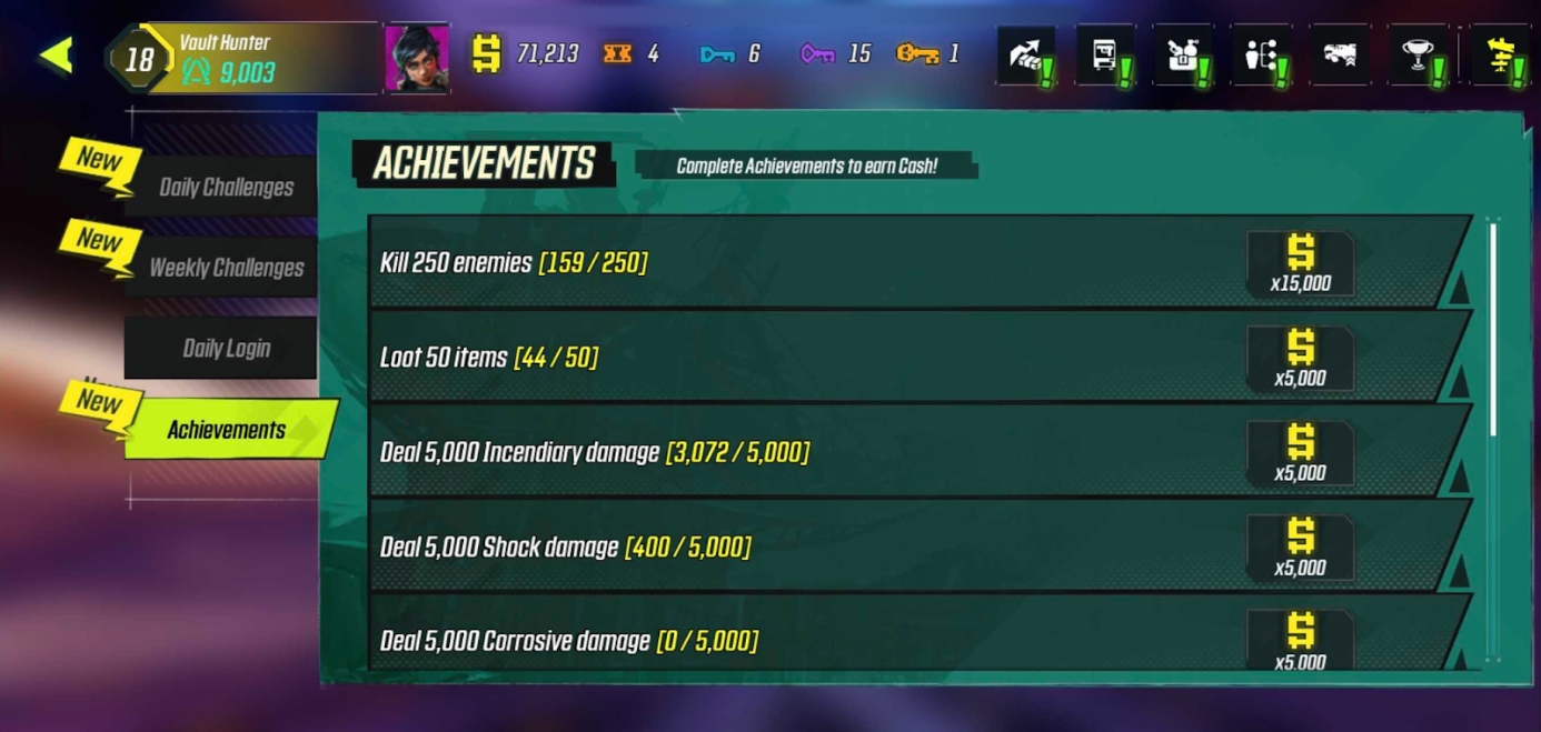 This highlights players’ achievements in Borderlands Mobile. Earn an achievement after successfully performing the required challenge.