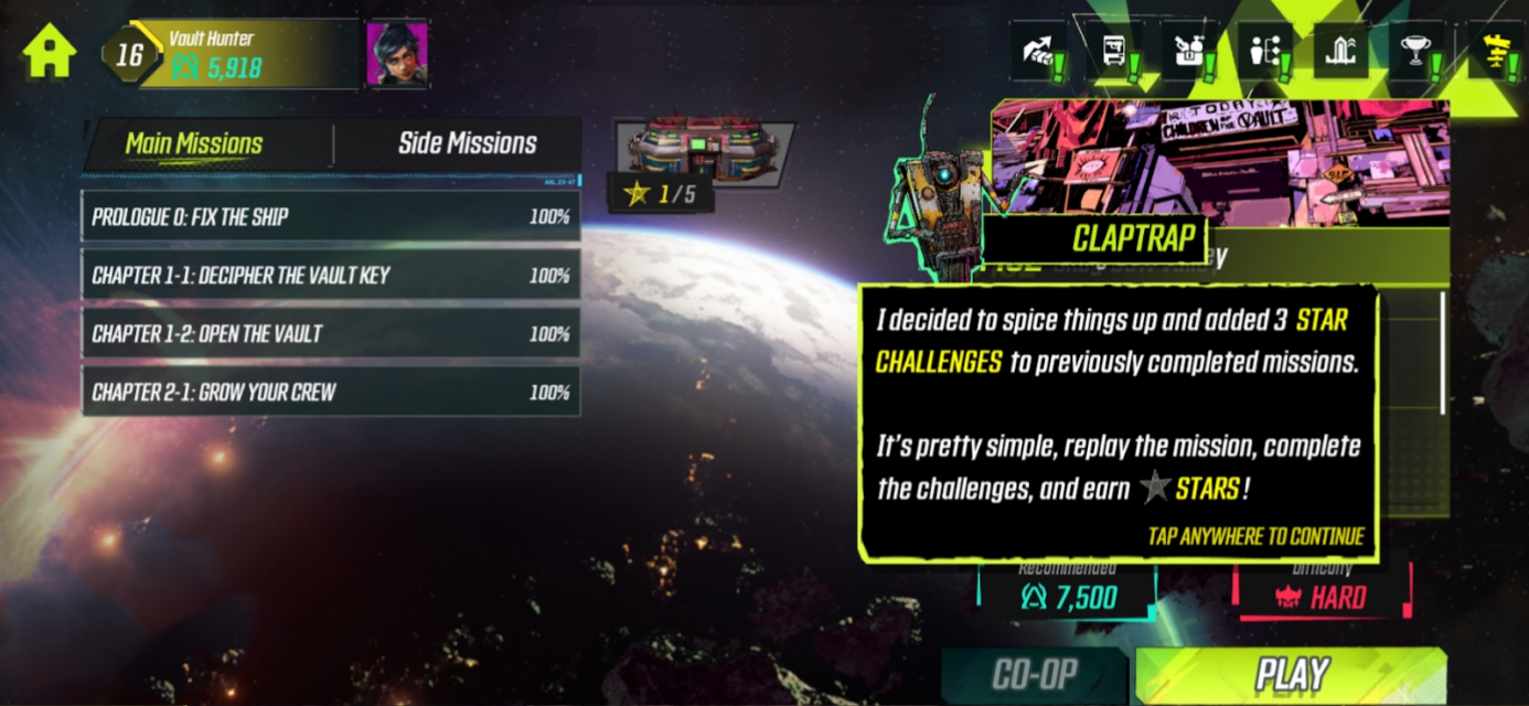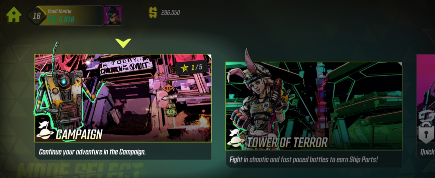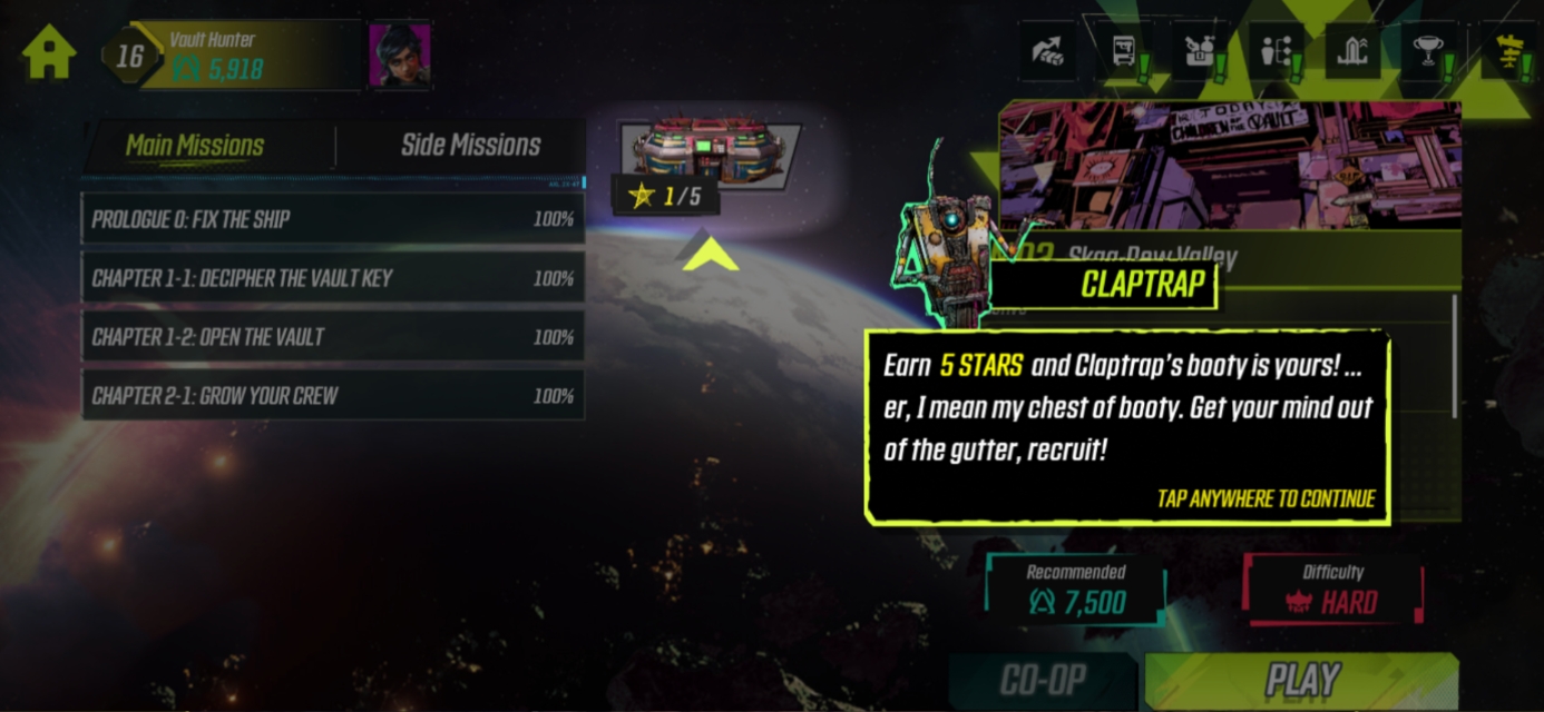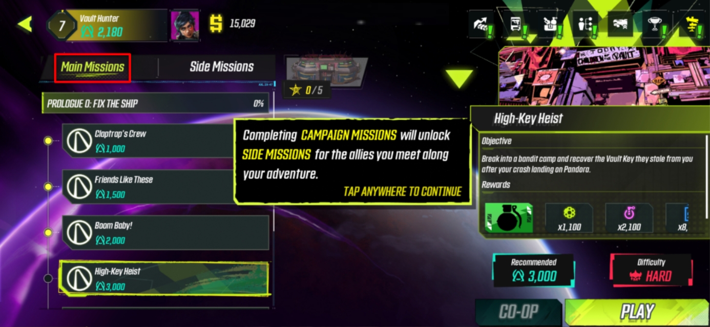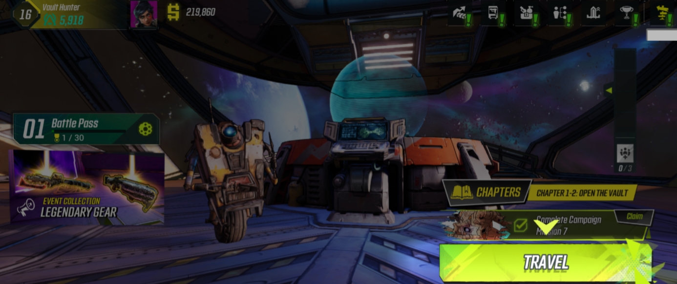Welcome to Borderlands Mobile’s Campaign feature! The Campaign will guide you on your journey through Pandora, and provide you with additional challenges to overcome to progress further in the game! Start by tapping on the Travel button.