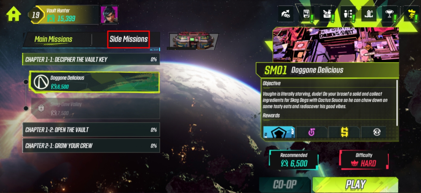 Side Mission - you can unlock Side Missions as you progress through the game’s Chapter. Side Missions offers optional objectives with extra rewards.