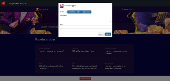 2. Click the Support button. Choose any FAQ category to check if there is any related article published that fits your concern.