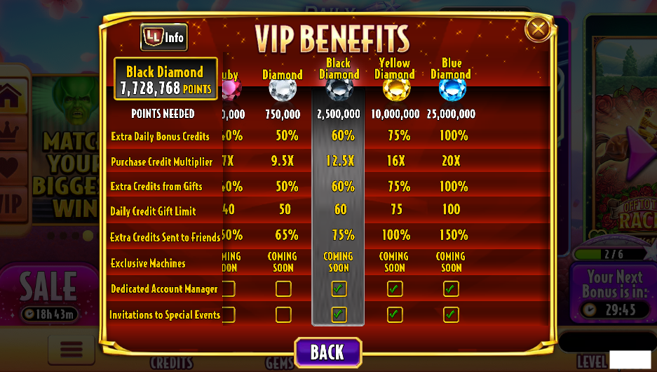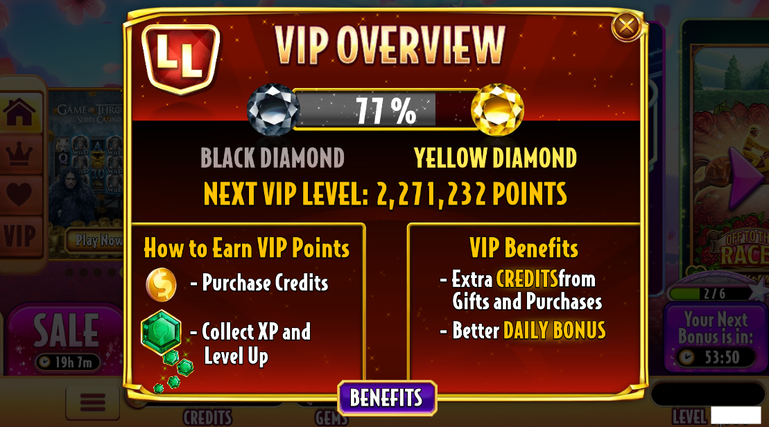 To view more details about your VIP Tier, you can click the Benefits button at the bottom of the VIP Overview to see more information about your VIP Benefits.