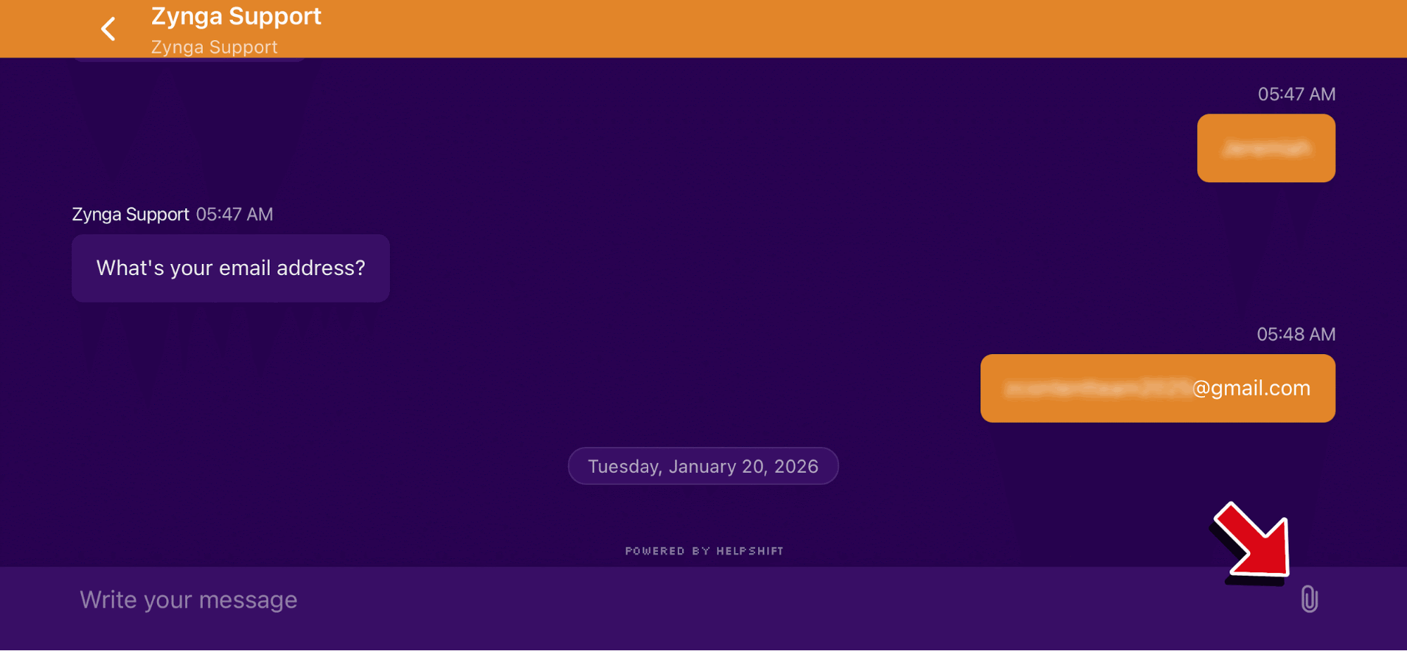 The "Paper clip" button in the lower-right corner of the screen allows you to attach a screenshot.