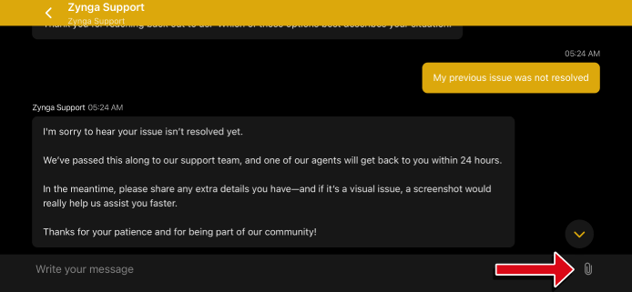 The "Paper clip" button in the lower-right corner of the screen allows you to attach a screenshot.