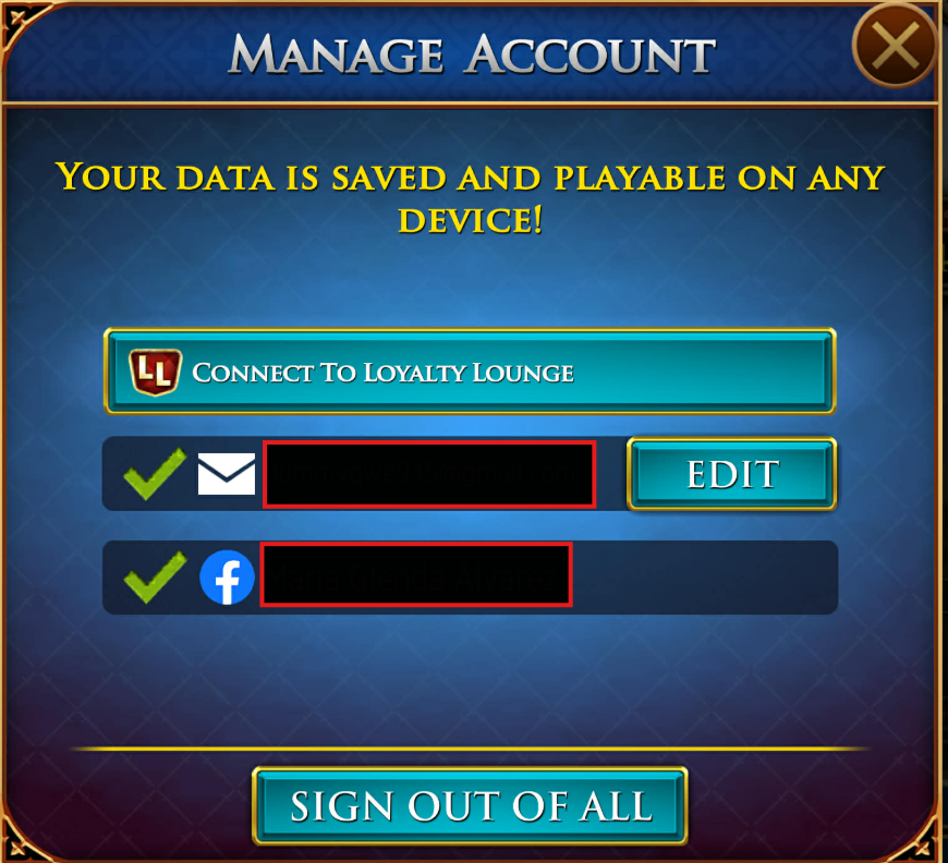 NOTE: Before you connect your game to the Loyalty Lounge, make sure you recover your Primary account.