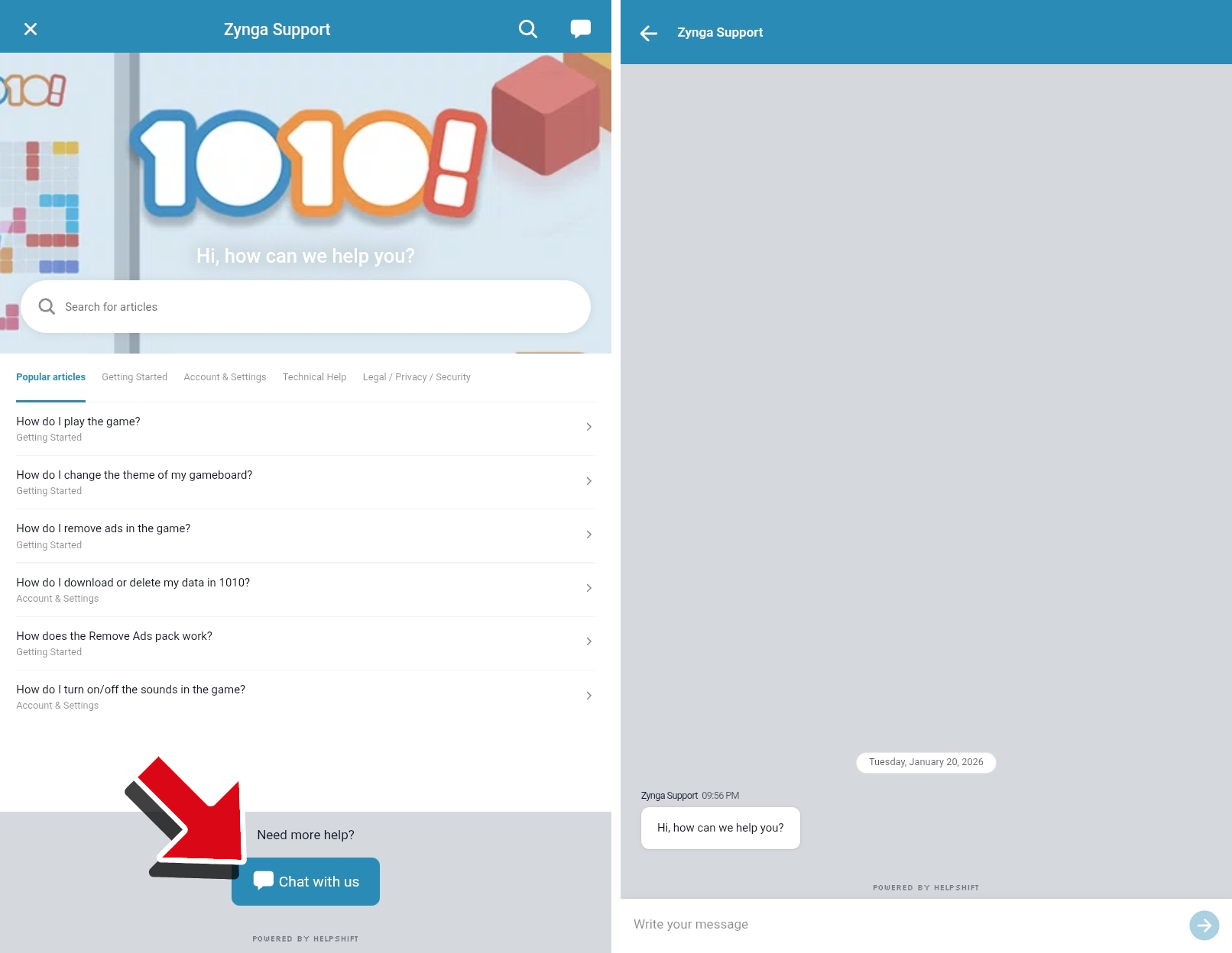 Then tap the Chat with Us button to start a conversation with our Player Support.