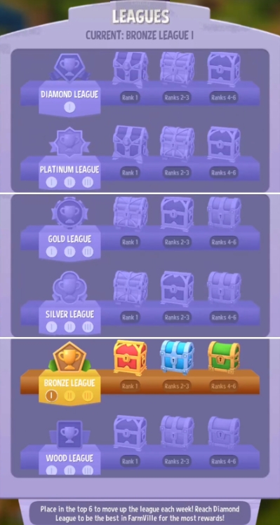 Your rewards will depend on your current Leaderboard rank and your League. Compete each week and be promoted to higher Leagues to unlock bigger and better rewards. Aspire to be a Diamond League farmer!