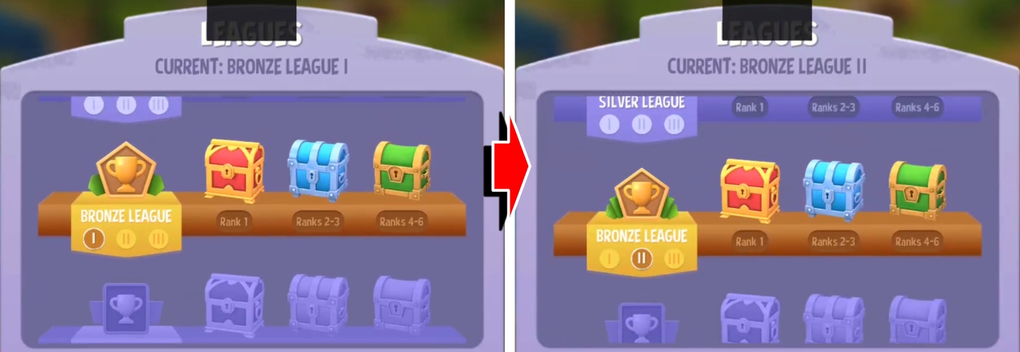Each League is divided into three (3) tiers. Example: Wood I, Wood II, Wood III etc. This applies to all Leagues except Diamond, having only 1 tier.