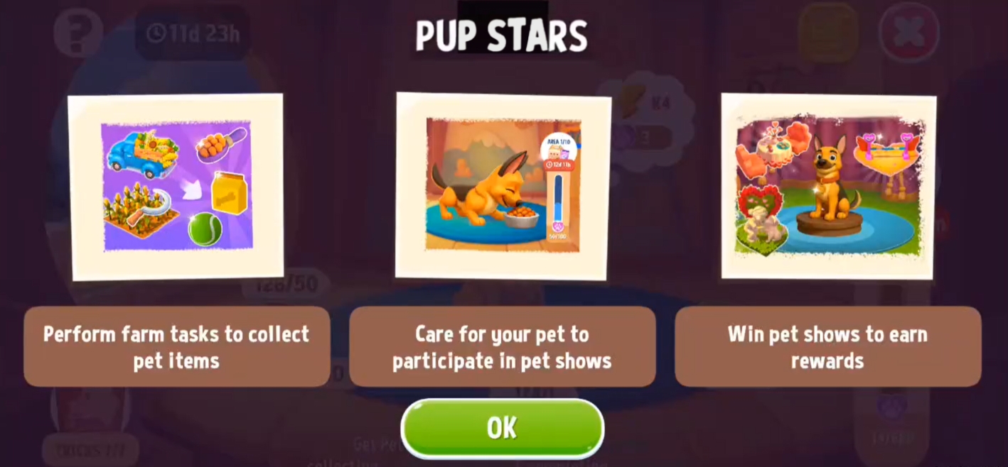 Once the bar is full, your pet is ready for the pet show tournament! It may also surprise you with a new Trick it learned.