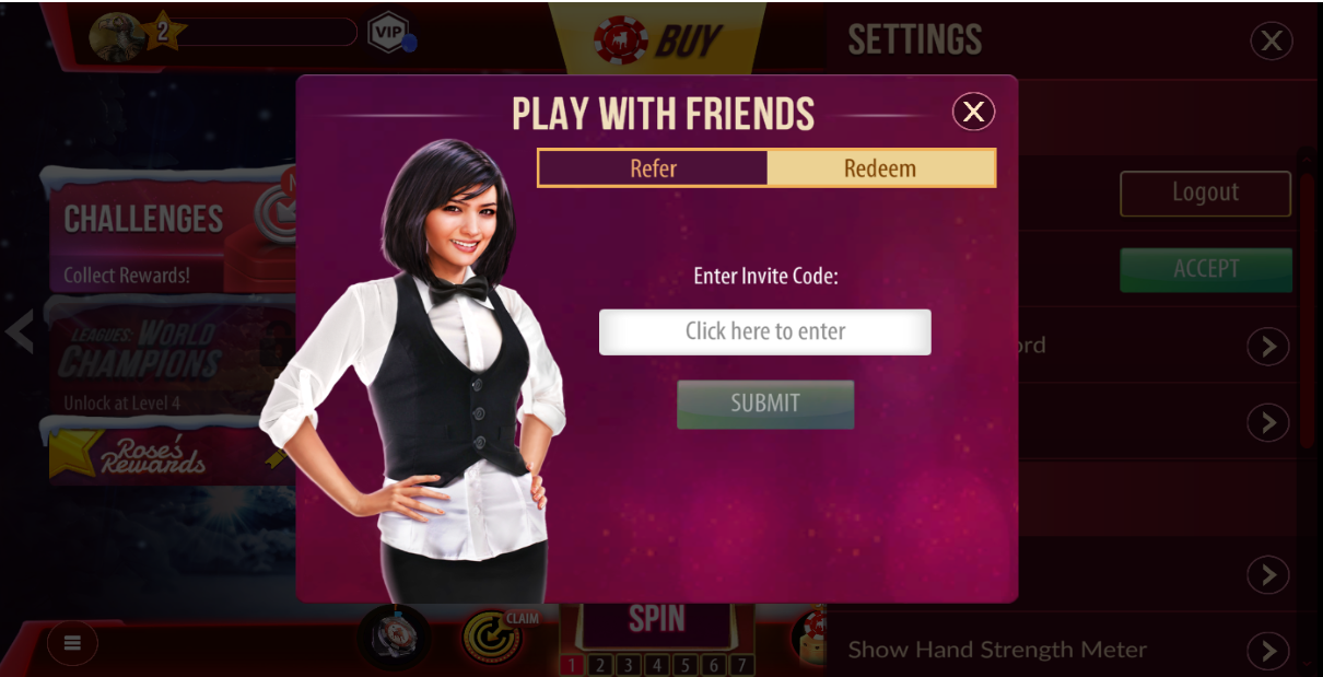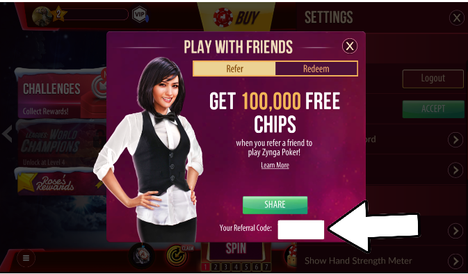 Envía tu código a tus amigos para invitarlos a Zynga Poker.