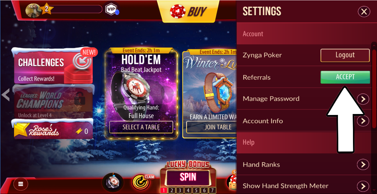 Los amigos a los que invites deben ser nuevos en Zynga Poker; es decir, no pueden haber descargado o jugado al juego en su dispositivo.