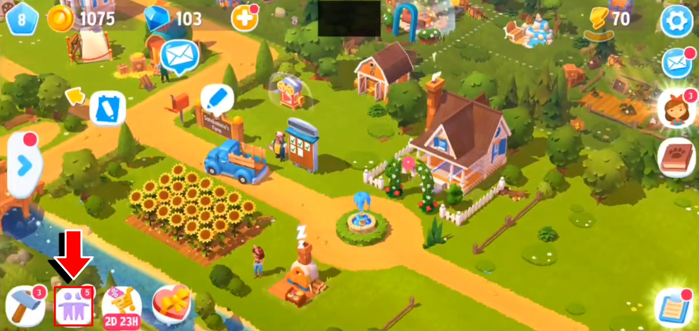 Toca en el botón de amigossituado en la esquina inferior izquierda de la pantalla de granja.