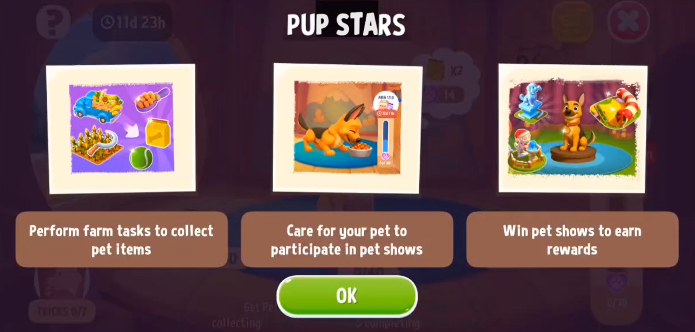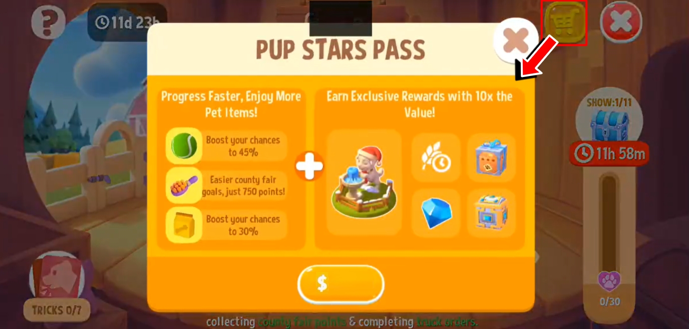 Acquista il Pass Cuccioli stellari che può aiutarti a ottenere più oggetti per animali domestici per avanzare più in fretta e ottenere ricompense premium! Controlla toccando il pulsante del carrello che si trova nell'angolo in alto a destra dello schermo.