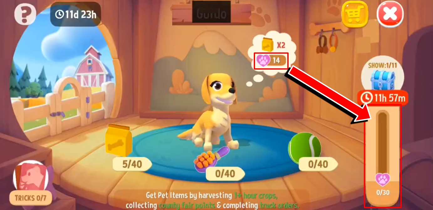 Quando la barra è piena, il tuo animale domestico è pronto per il torneo di spettacoli degli animali! Potrebbe anche sorprenderti con un nuovo giochetto che ha imparato.