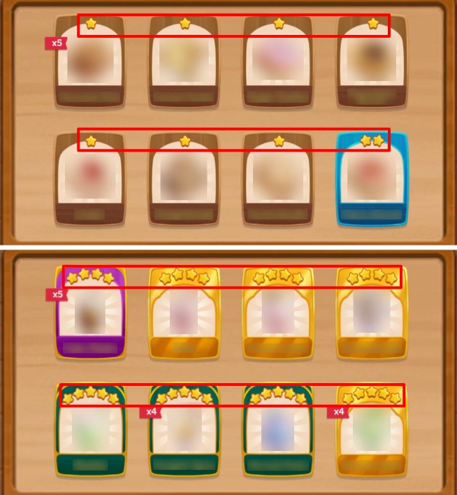 Duplikatkort kan byttes inn i belønningskister. Disse kistene krever et visst antall stjerner du kan samle inn når du bytter bort duplikatkortene dine.