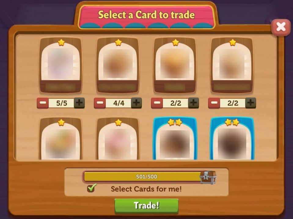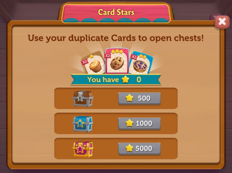 Duplikatkort kan byttes inn i belønningskister. Disse kistene krever et visst antall stjerner du kan samle inn når du bytter bort duplikatkortene dine.