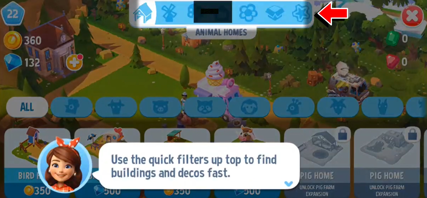 You will notice some changes in the game, focusing to make it more convenient for you to decorate your farm. New filters have been added to make it easier to find decorations.