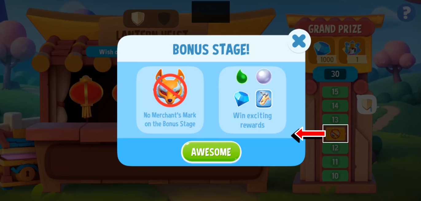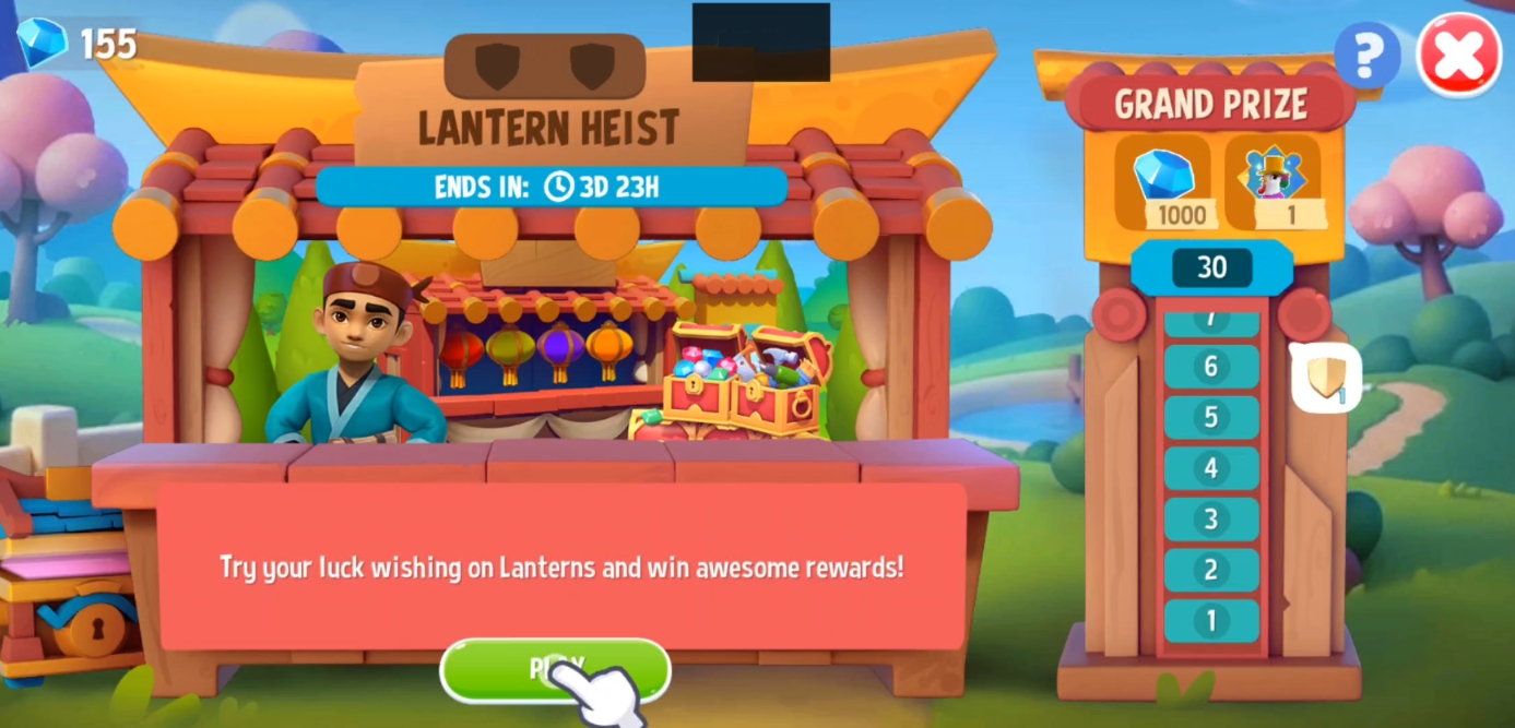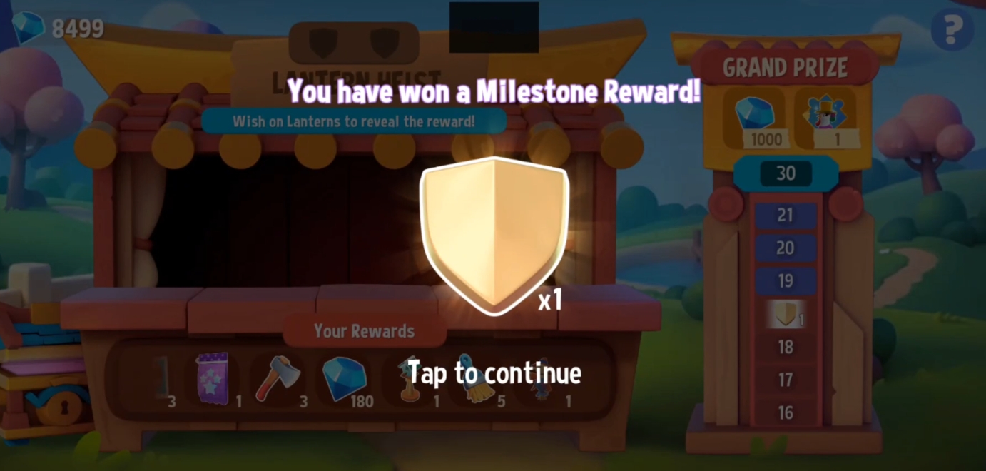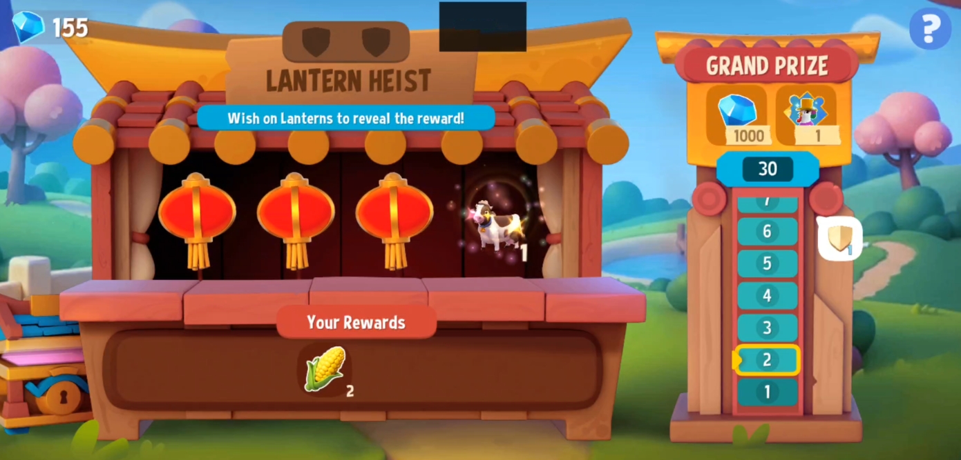 Each stage in Lantern Heist will present you with four Wish Lanterns🏮🏮🏮🏮. Tap on one of them to reveal a prize.