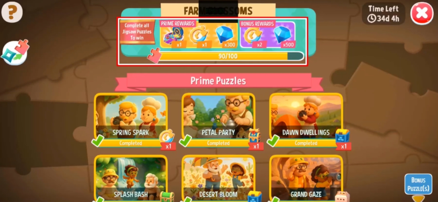 Complete all the Bonus Picture Puzzles of Farm Blossoms to win the Bonus Rewards!