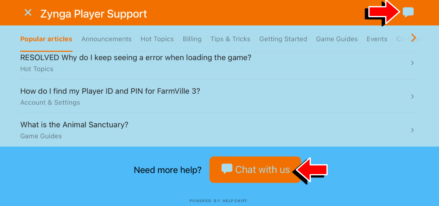 You can also access our Player Support page by tapping on Help and Support on the game loading screen.